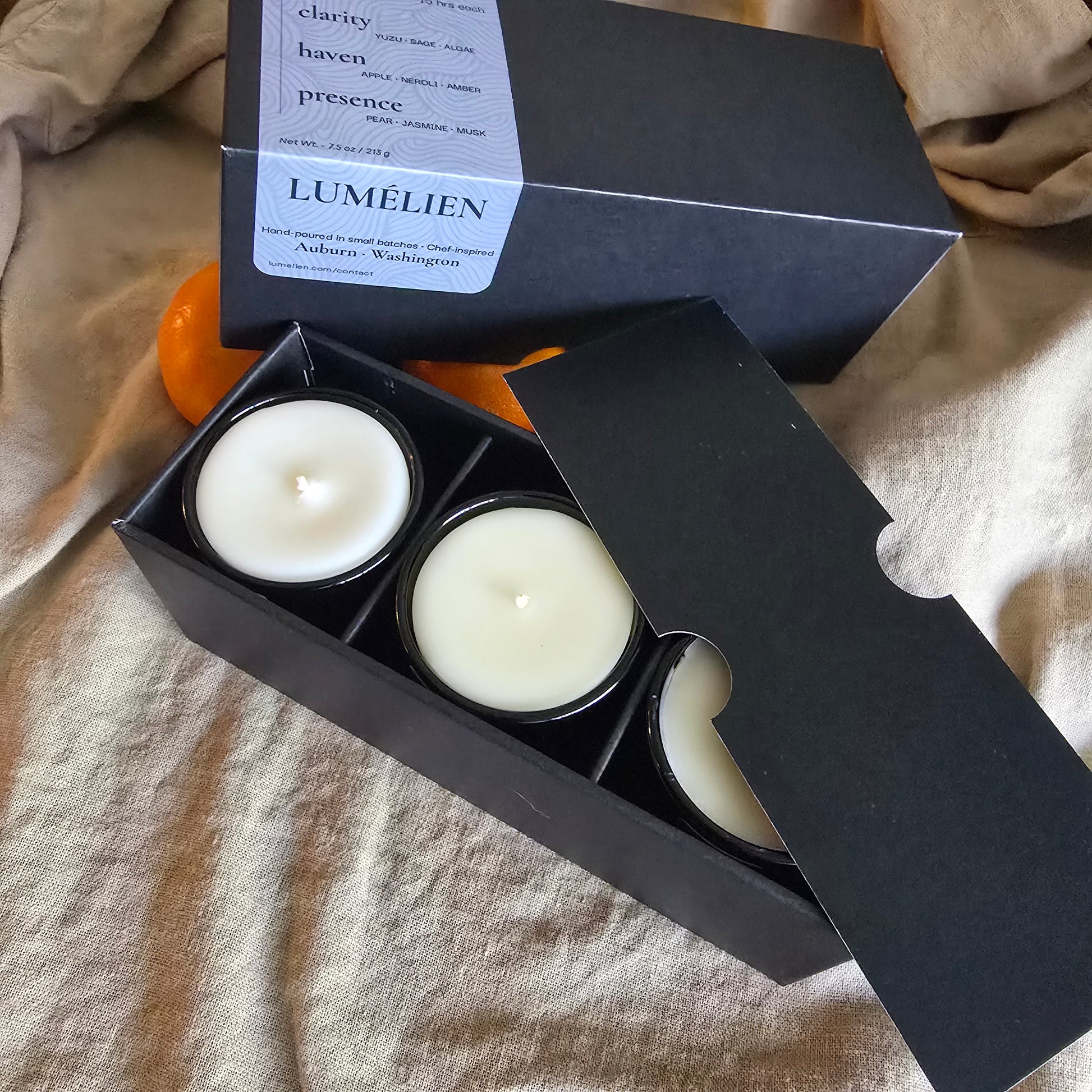 Discover Clarity, Haven, and Presence in this gift-ready mini trio.